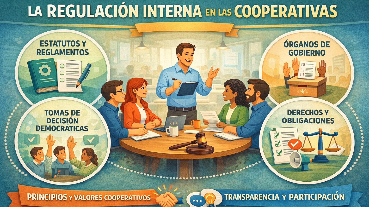 Dirección y Gestión Qué debe saber y hacer un Equipo Directivo sobre el desarrollo normativo, gestión documental y de planificación Liderazgo eficaz en entornos colaborativos La regulación interna en las Cooperativas El funcionamiento de la Cooperativa de Enseñanza Relevo generacional Gestión de la empresa cooperativa El papel de la dirección en la transformación de un centro educativo Aspectos económicos, societarios y contables de la admisión y baja de socios en las cooperativas de trabajo Conjunto de normas de funcionamiento en las cooperativas La gestión societaria de la cooperativa Los Principios y la Cultura Cooperativa. El desarrollo cooperativo del centro Gestión transformativa de conflictos en el ámbito cooperativo Volver al Catálogo de Acciones Formativas